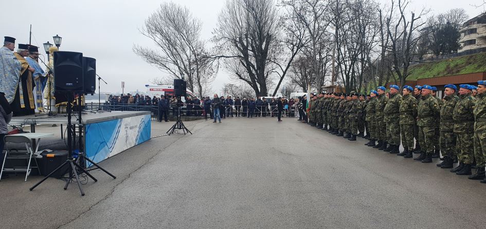 Пред понтона беше отслужен тържествен богоявленски водосвет на бойните знамена на Българската армия, воден от Главиницкия епископ Макарий.
